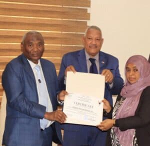 شهد الحفل حضوراً نوعياً من الخبراء والقادة، من بينهم الدكتور اللواء أمين إسماعيل، والدكتور عادل عبد العزيز الفكي، واللواء شرطة (م) برعي وهبي برعي ممثلاً لجمعية تطوير زراعة النخيل بالولاية الشمالية، إلى جانب الدكتورة مروة فؤاد قباني من قسم المبادرات بالمركز. كما سجلت التكنولوجيا حضورها بتجسير المسافات عبر تقنية “زوم“، حيث شاركت الأستاذة علاء عبد العزيز مكاوي، مدير إدارة التدريب بوزارة الزراعة، متابعةً ثمار هذا الجهد التدريبي المكثف.